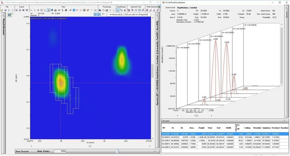 • Analisi efficiente dei dati qualitativi e quantitativi per GCxGC(-MS), incluso il controllo integrato per strumenti compatibili