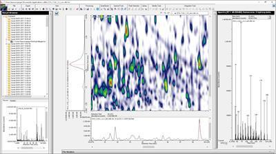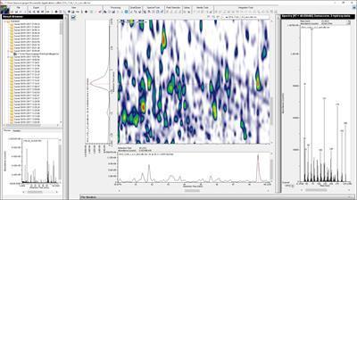 • Facile navigazione dei dati tramite pannelli collegati dinamicamente che mostrano i grafici di superficie e di contorno, gli spettri e le tabelle dei picchi
