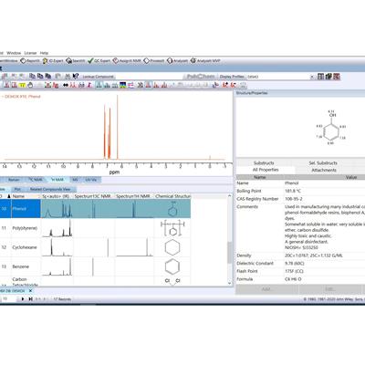 Strumenti aggiuntivi specifici per ogni tecnica, come: analisi dei gruppi funzionali IR/Raman, ricerca inversa e adattiva MS (brevettata), deconvoluzione/analisi MS automatizzata, predizione NMR e molto altro!