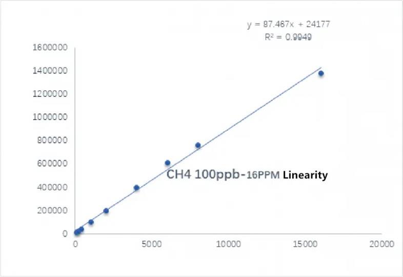 - Una singola concentrazione di gas standard può ottenere una calibrazione lineare dello strumento e il coefficiente di correlazione della curva di calibrazione R2 ≥ 0.999