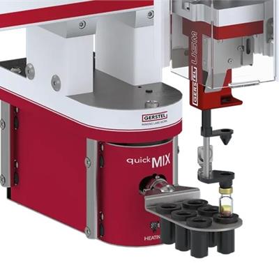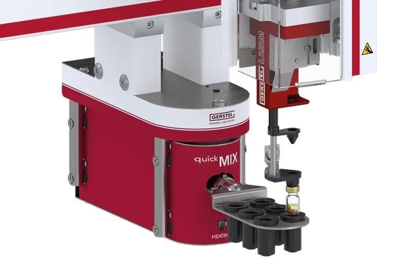 L'opzione QuickMix di GERSTEL consente di integrare un agitatore verticale rapido come parte del processo di preparazione automatica del campione utilizzando il campionatore multifunzioe MultiPurposeSampler MPS.