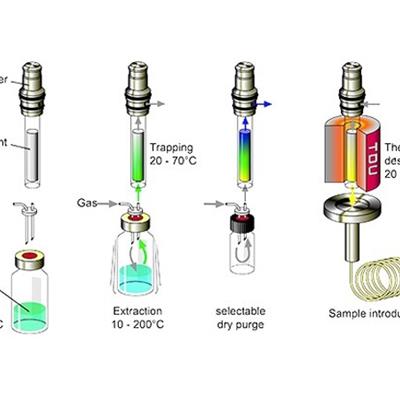 - Gli analiti provenienti dallo spazio gassoso sopra un campione liquido, viscoso o solido vengono continuamente arricchiti su un adsorbente