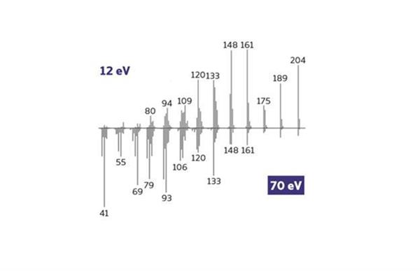 Identifica composti strutturalmente simili: usa spettri complementari, con ione molecolare più intenso e frammentazione ridotta, per identificare isomeri indistinguibili a 70 eV.