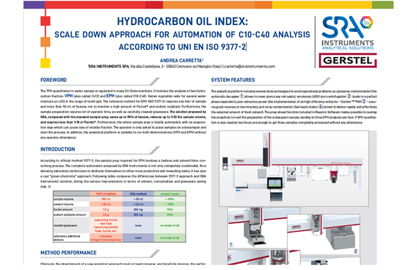 Il metodo di riferimento per l'EPH (ISO 9377-2) richiede un litro di campione e oltre 50 ml di esano, senza contare un'elevata quantità di Florisil® e solfato di sodio. Inoltre, la preparazione del campione necessita di molto tempo da parte dell'operatore, nonché una vetreria accuratamente pulita.