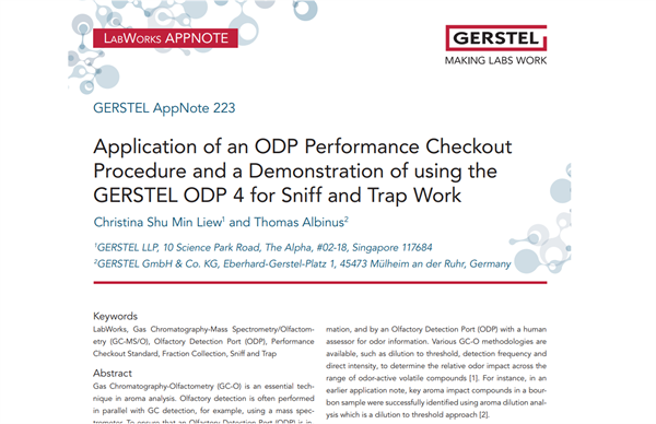 Accade spesso che i composti coeluenti non siano chiaramente rilevabili né dal rivelatore né dall’operatore; tale situazione può essere elegantemente risolta utilizzando l’opzione Sniff and Trap per la porta olfattometrica ODP4 di GERSTEL.