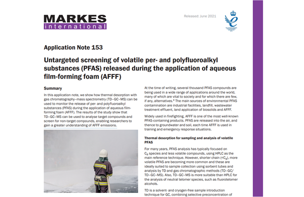 In questa nota applicativa, si evidenzia come il desorbimento termico con gascromatografia-spettrometria di massa (TD-GC/MS) possa essere utilizzato per monitorare il rilascio di sostanze perfluoroalchiliche e polifluoroalchiliche (PFAS) durante l'applicazione di schiuma filmogena acquosa (AFFF). In particolare: