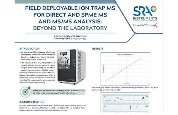 Lo spettrometro di massa portatile a trappola ionica 3D con interfaccia di ionizzazione chimica a pressione atmosferica, Explorer 30 (MTE30) di MassTech, è stato utilizzato per monitorare la concentrazione di istamina nel pesce fresco.