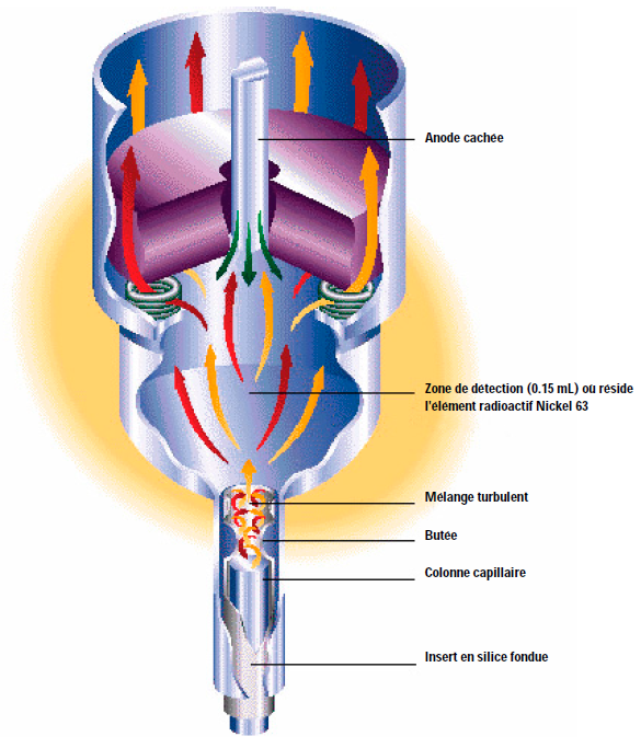 Le détecteur à capture d'électrons est spécifique des composés hautement électronégatifs. Il permet d'allier la sélectivité à une haute sensibilité lors de l'analyse de traces de produits halogénés, de composés organométalliques ou de composés azotés.