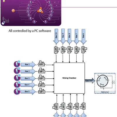 Questo miscelatore/diluitore di gas può preparare e distribuire automaticamente gas complessi a praticamente tutti i tipi di strumenti analitici, reattori o sensori.