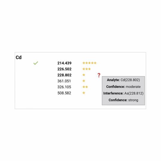 • Software intelligente IntelliQuant, fornisce conoscenze di livello esperto per identificare le interferenze spettrali che possono influire sulla precisione, fornendo raccomandazioni che consentono di selezionare rapidamente la lunghezza d'onda migliore ed evitando inutili rimisurazioni