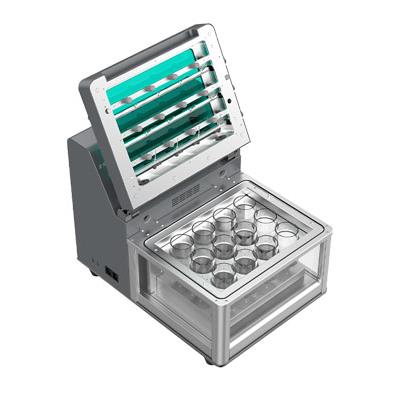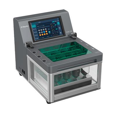 Auto EVA 12 di RayKol è un sistema di evaporazione automatizzato basato su blow-down di azoto, che consente l'evaporazione automatica e in parallelo fino a un massimo di 12 campioni con rilevazione del punto finale della fase di concentrazione.
