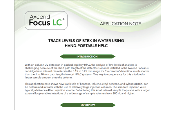 Le colonne installate nella cartuccia Axcend Focus LC presentano diametri interni compresi tra 0,15 e 0,25 mm per la rivelazione "in colonna", molto più corti dei cammini ottici da 1 a 10 mm della maggior parte dei sistemi HPLC.